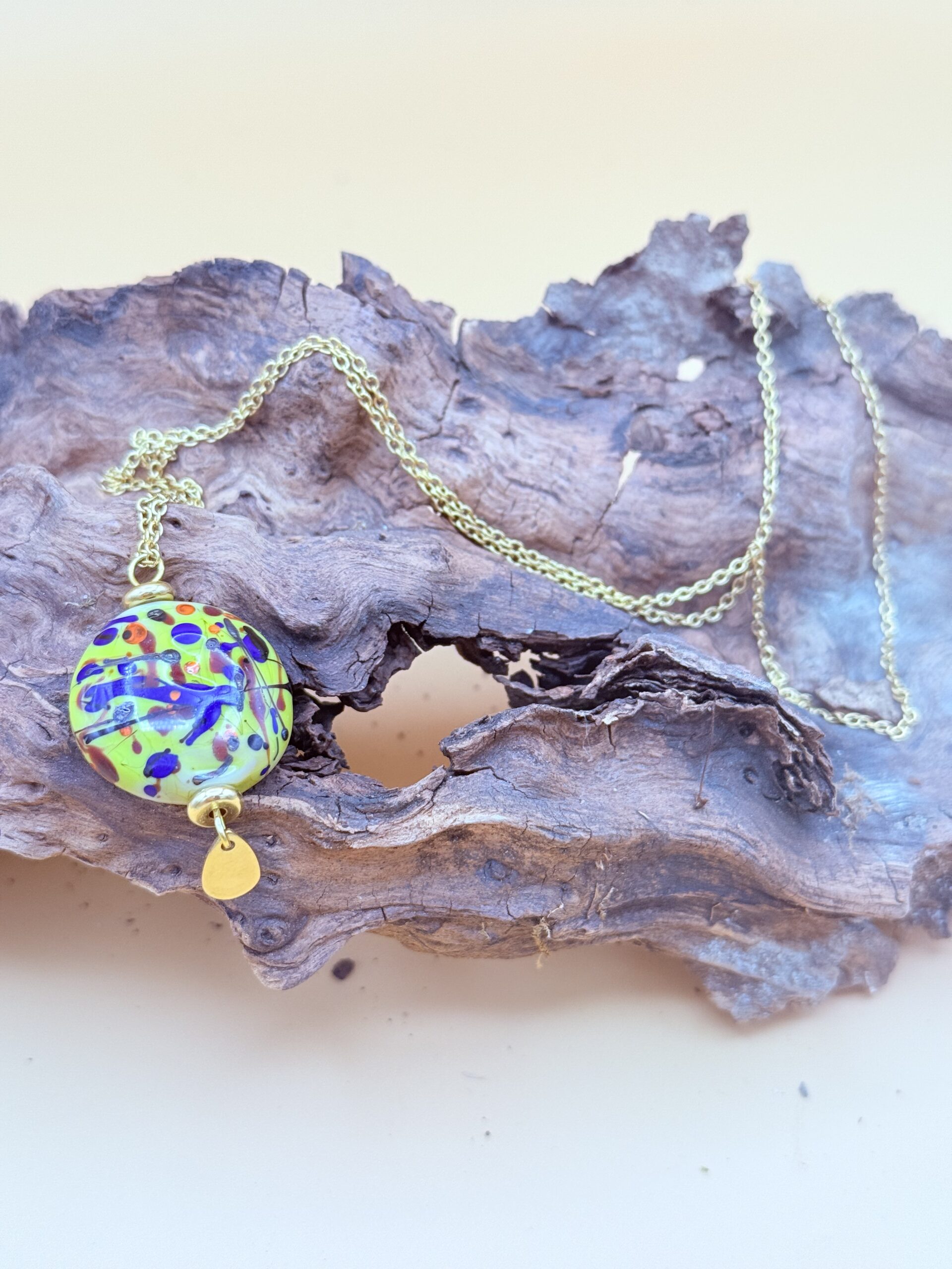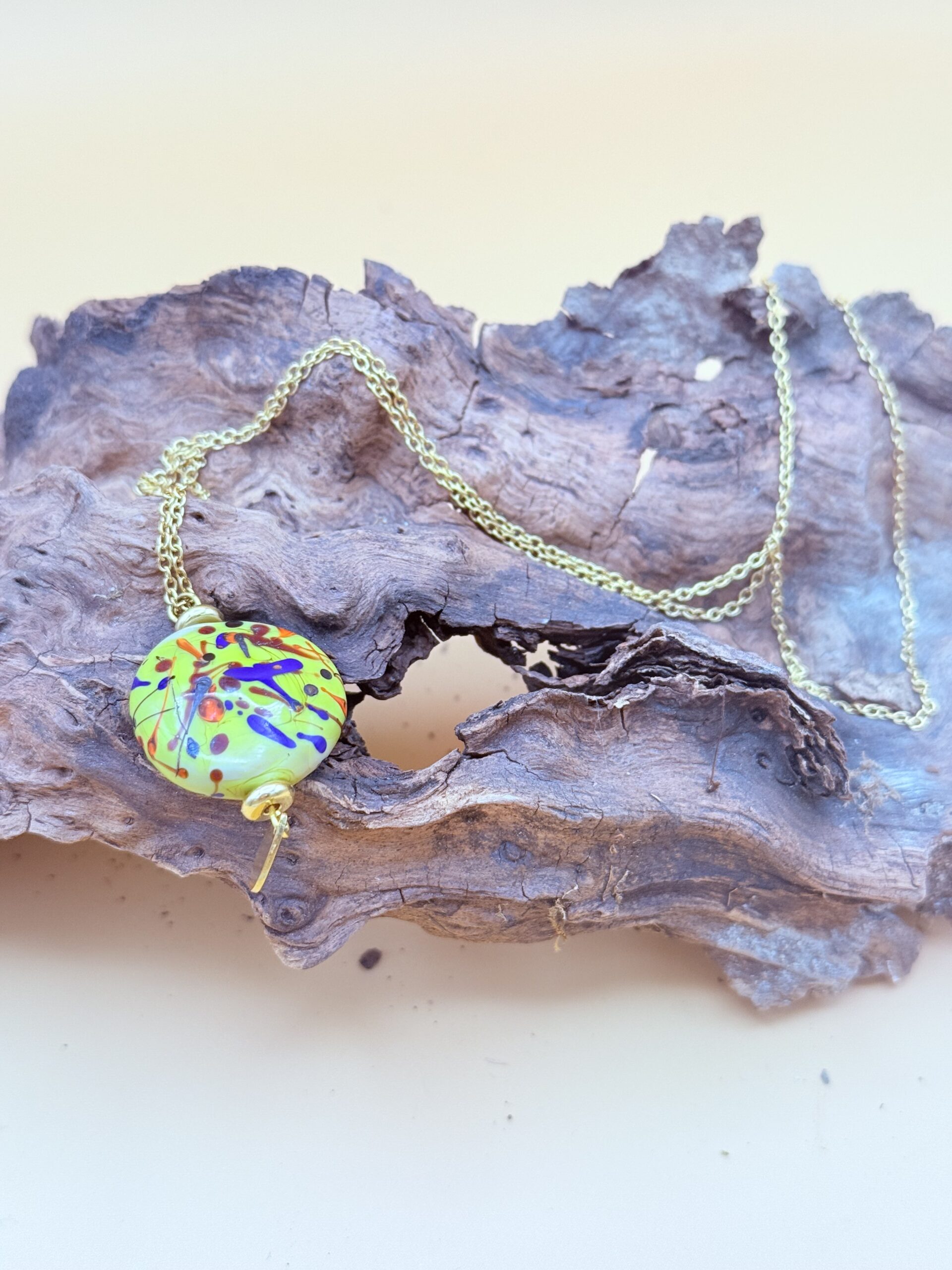 Collier avec une perle pistache en verre de Murano